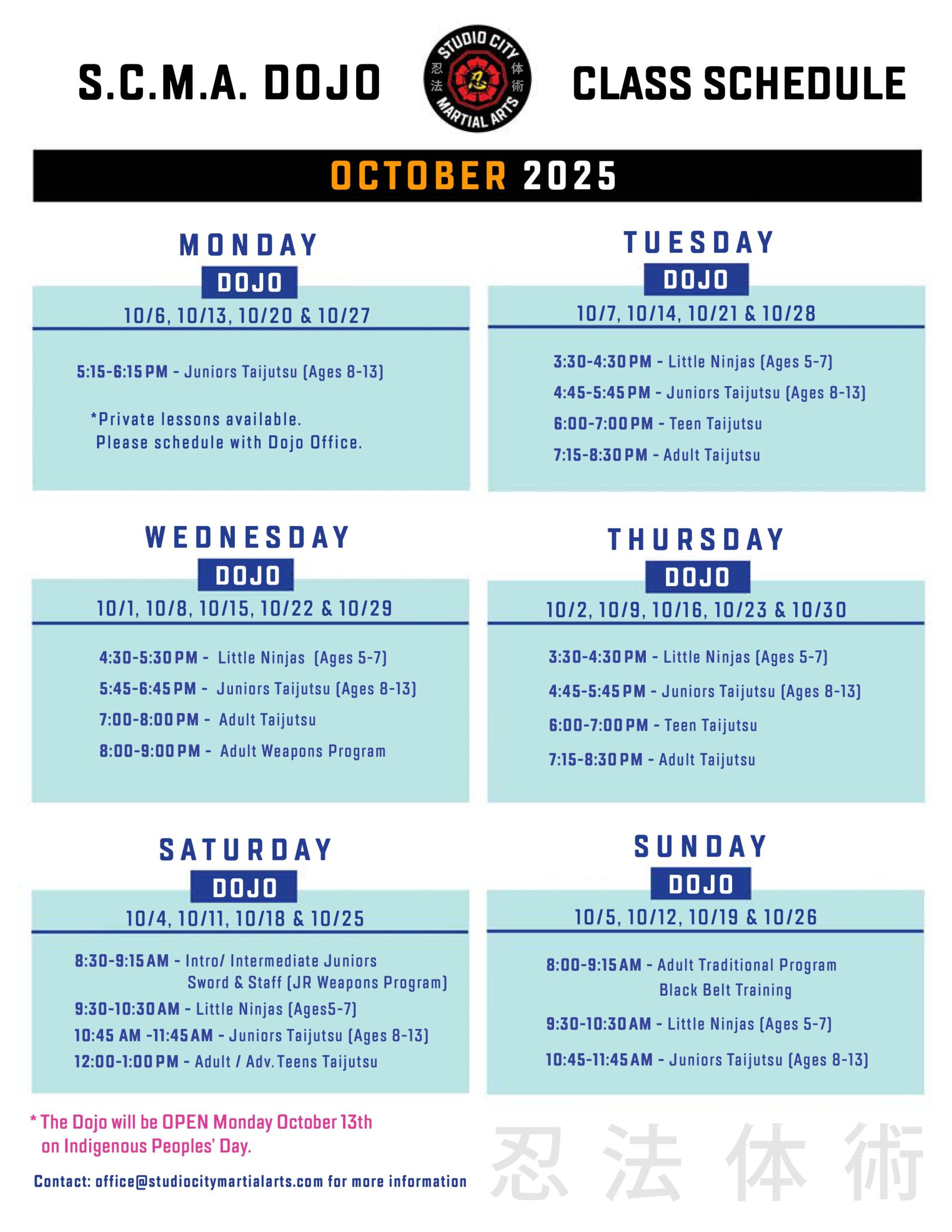 * To help us better serve our Dojo Community and adjust to changing mandates, class schedules are released every month. *